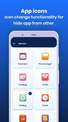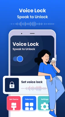 - Set Voice lock, PIN lock, and Pattern lock for unlocking the device. Here you can also set a security question and answer in case you forgot your set lock. - Set fake icon - Here you will be able to set different icons for this app. - Set theme - Set different picture or photo on lock screen. - You can also enable/disable the unlock sound while the phone is unlocked. - Enable/disable vibrate even when the phone is unlocked. - See the lock screen preview for the picture selected for the lock screen.