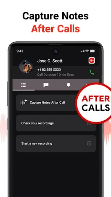 The Voice Recorder app features an after-call option that enables you to quickly start recording, view your recording list, send replies, and set reminders directly from the after-call screen.