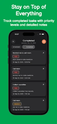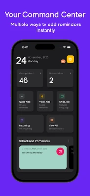 Smart AI Voice Processing: Understands natural language, asks clarifying questions, and organizes into recurring tasks, alarms, or to-dos. No more rigid apps!
