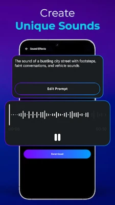 If you are needing a custom sound effect? Simply describe it, and our AI will generate a one-of-a-kind sound for you.