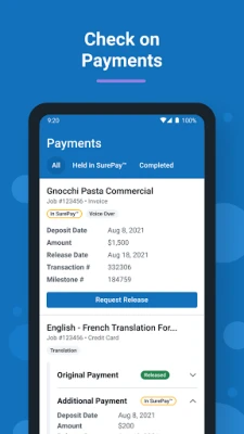 With our Voices Talent Companion app, you can easily manage jobs on the go, from saving jobs for later, to accepting job agreements, to communicating with clients, to checking on payment status for projects you’ve completed.
