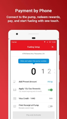 Pay and activate your gas pump without leaving the car. Use in-app payments to pay for gas directly from your phone.