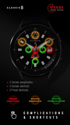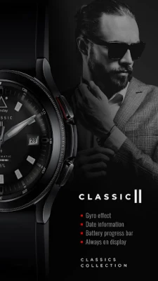 Choose a stylish watch face for a stylish look. Classic analog watch face with the ability to customize to your taste and appearance. The classic watch face has a handy battery indicator.