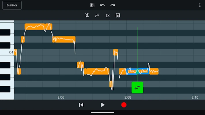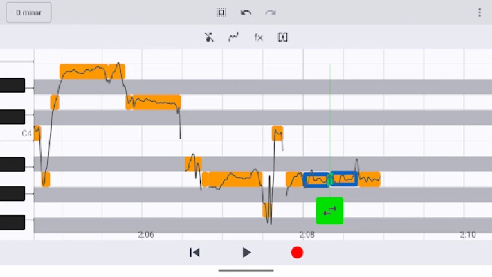 With VoxTune, you can easily record vocals and then correct the pitch. You can also load and edit existing vocal files. Adjust the pitch of each individual note, either manually or automatically according to the selected key.