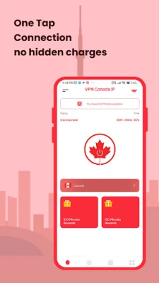 Instant IP Change:Replace your real IP with the IP address of the VPN server. Easily connect to Canada or other global servers.