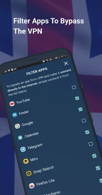 • Bypass VPN - helps you filter apps that can connect directly to the internet