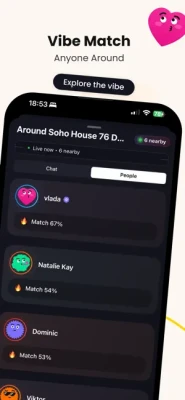 Explore your surroundings and connect with people nearby — whether you’re out with friends, at a café, or just hanging out. Our location-based approach makes it easy to discover, interact, and vibe with real people in your area.