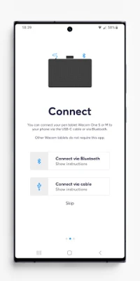 FOR ANDROID 14 & LATER: This app is not required on Android 14. Android 14 automatically assures distortion-free drawing in all device orientations. To connect via Bluetooth, pair your pen tablet in the Android system settings. If you installed Wacom Center on Android 14 & later, you can uninstall it again.