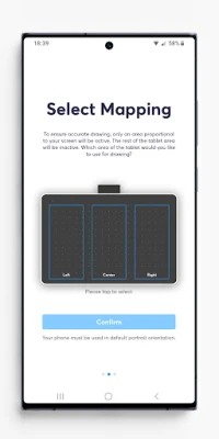 FOR ANDROID 8-13 ONLY: The screen of your Android device has a different proportion than the drawing area on your Wacom One pen tablet. Without the Wacom Center App, the drawing displayed on the screen may look distorted from your pen strokes on your Wacom One pen tablet. Wacom Center app calculates the exact size of the Wacom One drawing area needed to assure distortion-free drawing, and adjusts the drawing area accordingly. The rest of the tablet area will be inactive. On most Android devices, you can choose between three options for the drawing area location. You can enjoy your drawing now.