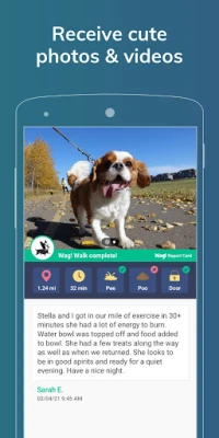 • Receive live pee/poop notifications and a detailed report card at the end of your service.