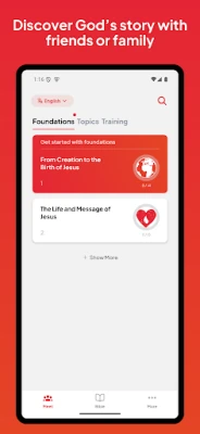 Features: - Available in multiple languages - Download lessons for offline use - Easily share bible stories (both text or audio) - Envision and mobilize other believers to make disciples