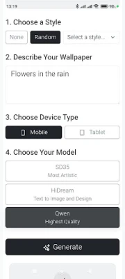 Introducing Wallpaper Generator, the revolutionary AI app that turns what you imagine into a stunning, one-of-a-kind background for your phone and tablet. Your vision is now your wallpaper.