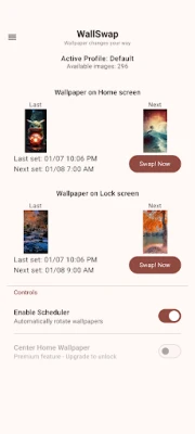 ⚡ Swap! Now Don't like the current wallpaper? Just tap the "Swap! Now" button for an instant refresh from your active collection.