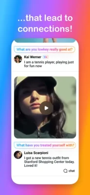 We will ask you a series of questions to get to know you then you’ll be launched into a group chat with everyone around your area. This means you don’t have to spend time crafting the perfect prompt or selecting your best images because we’re here to express ourselves through meaningful conversations!