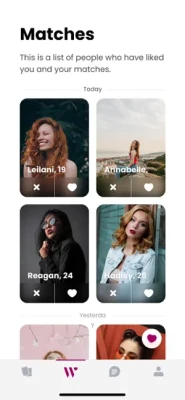 WannaBae is a new-generation dating app where you can make friends, expand your network, find connections, and start dating. Get ready to spark your dating life with WannaBae where you can Match. Chat and Date. WannaBae is a matchmaking app that’s easy and fun to use. You can heart someone’s profile to like and if they like you back, it’s a match! Two individuals will possibly match when there's a shared interest. Simply tap through the profiles you're interested in, visit online with your matches, and spark something new in your dating life.