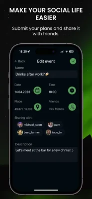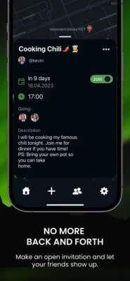 Start by coming up with an activity. Pick a time and place and choose who sees it and Voila! Now, the friends you've shared the activity with, can see your activity on a map and decide, if they Wannago (terrible pun).