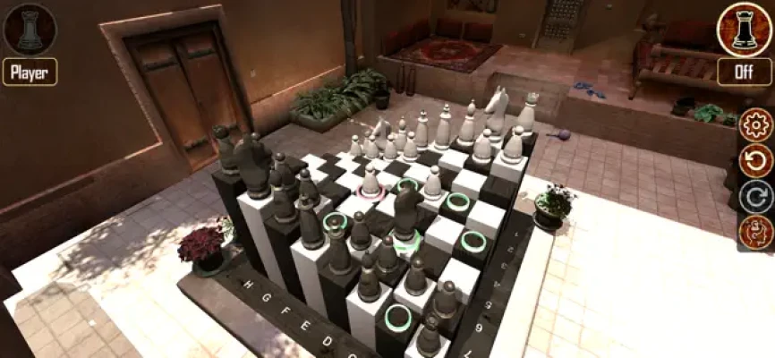 Play chess in this glorious high resolution 3D world. With 10 highly detailed Locations "Easter Village", "Baroque", "Courtyard", "Country Garden", "Medieval Times", "1066: Battle of Hastings", "Aztec Ruins", "Stone Mountain", "Steam Punk" & "Halloween: Trick Or Treat?"