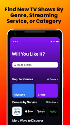 - Discover new shows by genre, streaming service, category, or even the mood you’re in.
