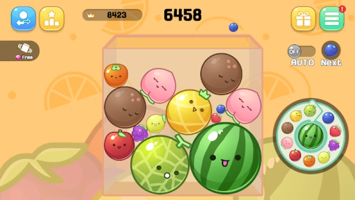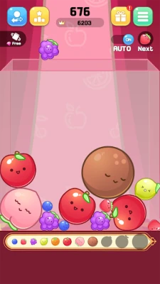 - Combine fruits of the same level to create a larger fruit.