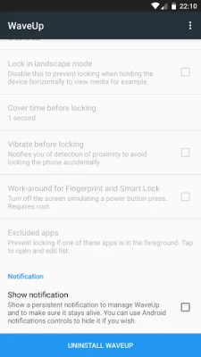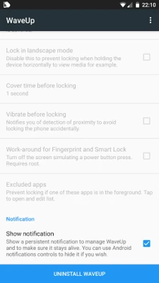 WaveUp uses Device Admin permissions, so it won’t uninstall the usual way. Use the 'Uninstall WaveUp' button in the app to remove it properly.