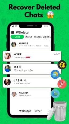 • Messages Recovery: Recover Whatsapp deleted Messages to restore deleted photos automatically.