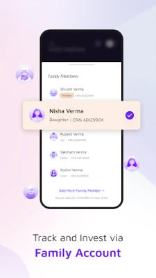 Family Account: Manage your family members’ investments seamlessly. Through the Family Account feature, you can invest on behalf of your family members and also keep a track of these investments.