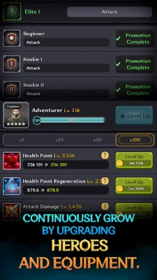 Defeat bosses, upgrade heroes and equipment, and continue to grow endlessly.