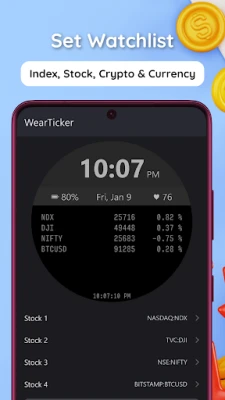 WearTicker is a Wear OS complication app that brings live stocks, crypto, currency, and F&O tracking to your wrist. You can now use it with any watch face that supports complications. For the best experience and full functionality, pair it with the dedicated “Watchface for WearTicker” watch face.