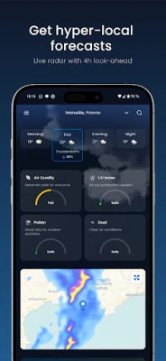 WeatherX+ tells you exactly when rain will start and stop—down to the minute. Plan routes with weather forecasts for every mile of your journey. Get hyper-local, real-time forecasts, severe weather alerts, and detailed insights right at your fingertips.