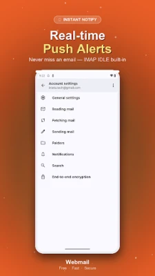 Instant Push Notifications โ Get notified the moment new emails arrive via IMAP IDLE