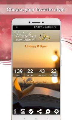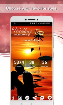 Customize your countdown style and phrase (like "until we get married" or "until I say I do")