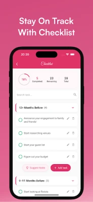 Stay organized with a personalized to-do list based on your wedding date. Each task includes reminders and can be fully customized — making your wedding planning checklist stress-free, flexible, and always on time.