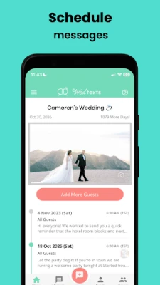 - ⏰Unlimited Pre-scheduled Reminders - Schedule unlimited WedTexts reminders in advance, so you don’t have to think about them later