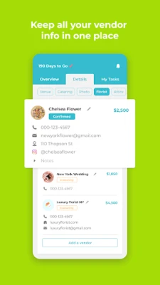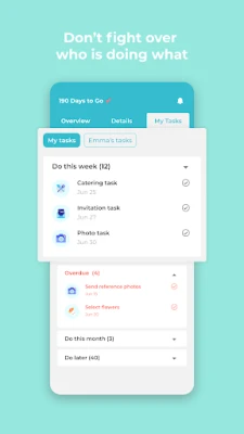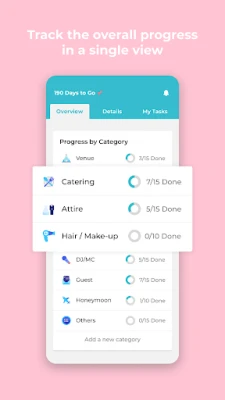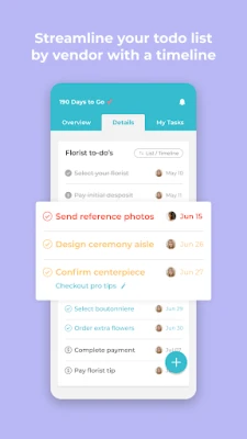 > To-do checklist - Plan your wedding by crossing out to-do checklist! See key to-dos in a single view. No more laundry list of to-dos!