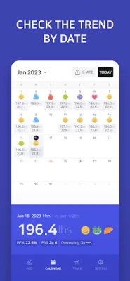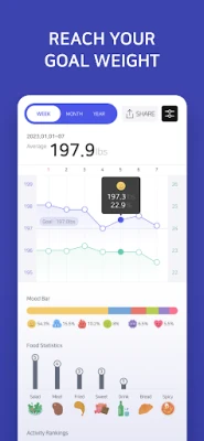 - Watch the changes in your weight and body fat percentage on a weekly, monthly, and yearly basis.