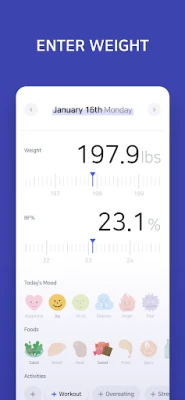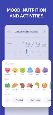■ Log your weight, body fat percentage, nutrition, activity, and mood