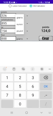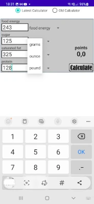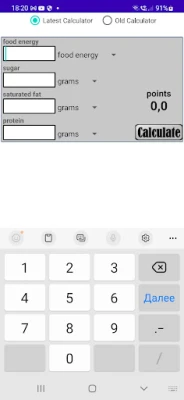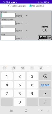 Latest Calculator (Effective after December 2015) - Points are based on calories, sugar, saturated fat, and protein. Default calculation is based on 100g portion. Old Calculator (Used until December 2015) - Points are based on protein, carbohydrates, fat and fiber. Option to enter product weight. Default calculation is based on 100g portion.