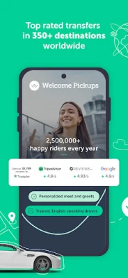 You can book 5-star transfers in over 360+ cities with Welcome Pickups. From port and airport transfers to city-to-city rides, we’ve got you covered. Our easy-to-use app ensures your ride is just a few taps away, allowing you to book and manage private transfers, access travel extras, contact customer support, and chat with your driver – all from your mobile or tablet.