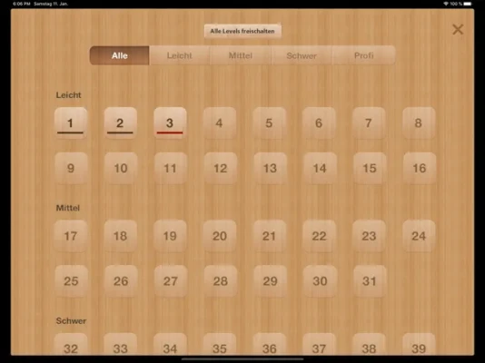 Insgesamt erhalten Sie 65 Levels in verschiedenen Schwierigkeitsgraden (Leicht, Mittel, Schwer, Profi).