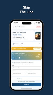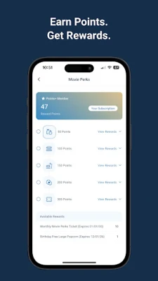 • Redeem points for rewards, tickets, concessions, and more