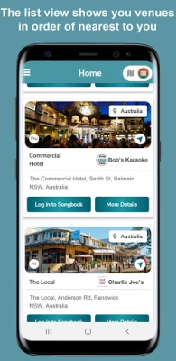 What Can I Sing (WCIS) is an on-demand App for Karaoke requests. The user interface allows patrons to find nearby venues via geo-location map and see the hours of operation for Karaoke in each venue. The whatcanising App will allow patrons to view the host’s songbook and make requests. Patrons can include a key change request and also see a list of their requests. This list will show if the host has accepted or rejected the request. The Patron can also receive a notification to tell them it is their turn next.