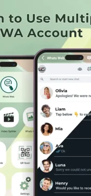 on same device or same account on multiple devices by scanning WhatsApp Web QR code. App offers strong connection and avoids unexpected logouts.