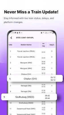 - Know where your train has reached in real time & get alerts for any delays in train running status.
