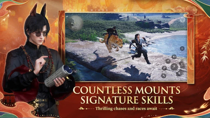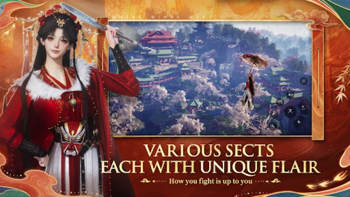Traverse vast landscapes in Wuxia style: scale rooftops with fluid parkour, ride the windstride across miles in moments, or use fast travel points to leap between regions.