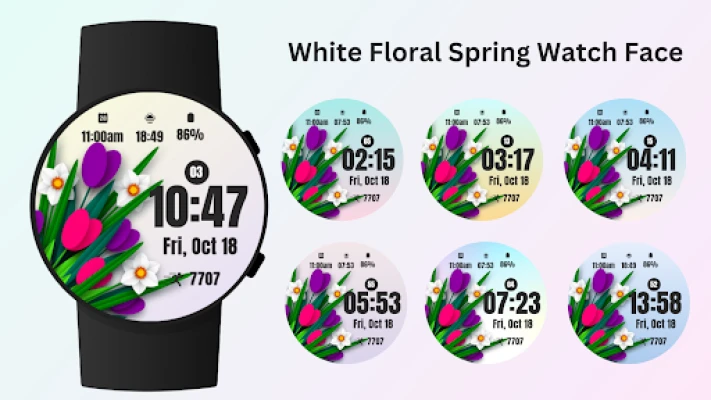 White Floral Spring Watch Face app for Embrace the beauty of spring with the White Floral Spring Watch Face. Designed with delicate white flowers, this watch face offers a graceful and refreshing look, perfect for women who appreciate nature's charm on their wrist. Whether for casual outings or special occasions, this watch face adds a touch of elegance to your daily style.