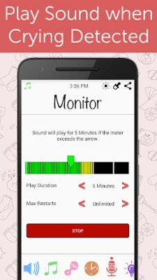 - Baby monitor will reactivate timer and play sound if crying is detected