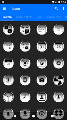 3.Select the icon, this will show your icon packs, select White O and choose your favourite icon, Built-in Search Feature within the App.