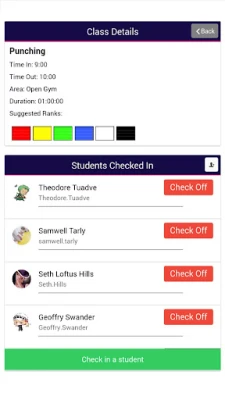 Martial Arts Schools can use our software WhiteBelt to run their Dojo freeing up their time so they can focus on teaching. This app, WhiteBelt Mobile is designed for the students at the dojo - With this app students can: - Ensure their contact information is up-to-date - Update their profile picture - Connect with other members - Quickly check into class - Check out the timetable