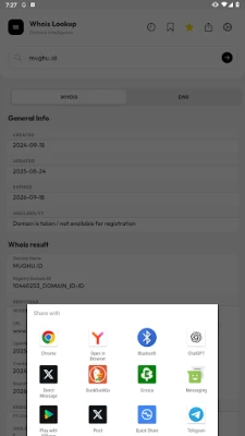 Need to send a report to a client or colleague? Use the built-in share feature to instantly send domain details via email, messaging apps, or social media.