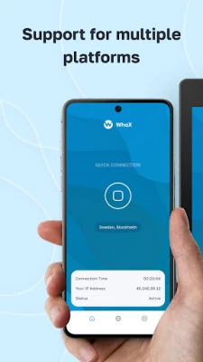 With WhoX, you can effortlessly change your IP address, secure your connection, and confidently access your favorite sites and services from anywhere in the world. Enjoy the fast VPN for mobile games, safely access your desired content, and install mobile apps on your Android device. Shop online and conduct business securely from any location by connecting to a VPN server in your chosen country. Plus, our VPN protects your data even on public WiFi networks.